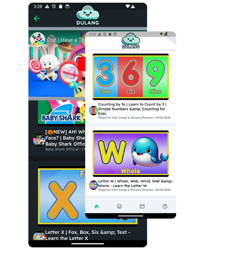 Conheça o Dulang, um aplicativo educativo que transforma o tempo de tela das crianças entre 0 a 6 anos em uma oportunidade incrível de aprendizado de inglês de forma divertida! Com o Dulang, seus filhos podem explorar idiomas brincando, enquanto assistem a vídeos cuidadosamente selecionados que promovem um aprendizado bilíngue natural.